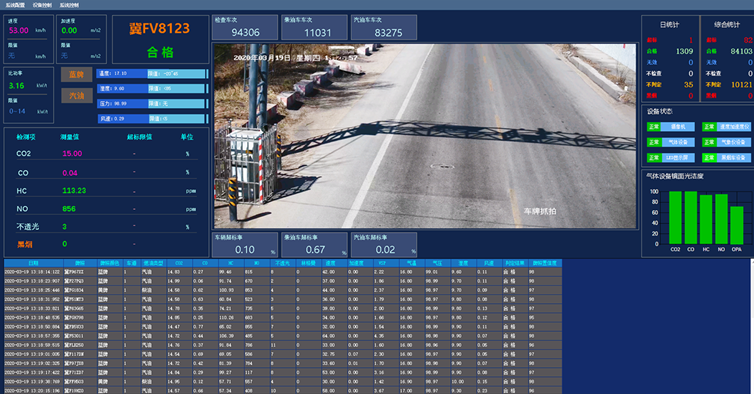 1. 數(shù)據(jù)采集模塊:實(shí)時采集車輛抓拍系統(tǒng)、氣體分析儀、測速系統(tǒng)、環(huán)境氣象設(shè)備、黑煙車電子抓拍系統(tǒng)的相關(guān)數(shù)據(jù),包括檢測車次、汽油車次、柴油車次、合格數(shù)、超標(biāo)數(shù)、無效數(shù)、以及日統(tǒng)計(jì)、累計(jì)統(tǒng)計(jì)等信息。